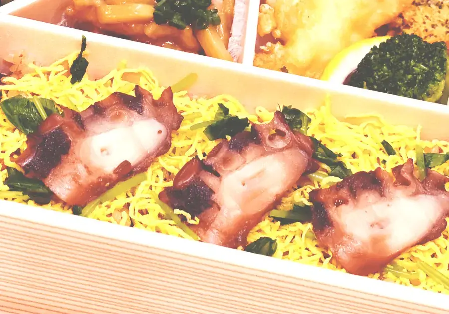 蛸炊込みご飯(煮蛸、錦糸玉子、三つ葉)