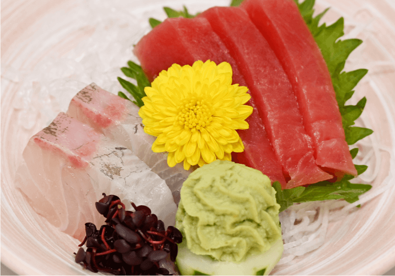 お造り鮪、白身魚、あしらい