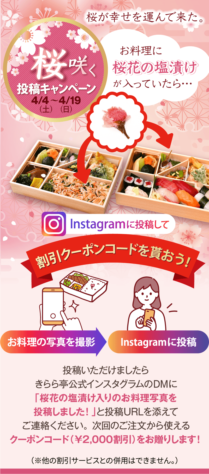 春の運試し!桜花入り料理を投稿して2,000円割引クーポン