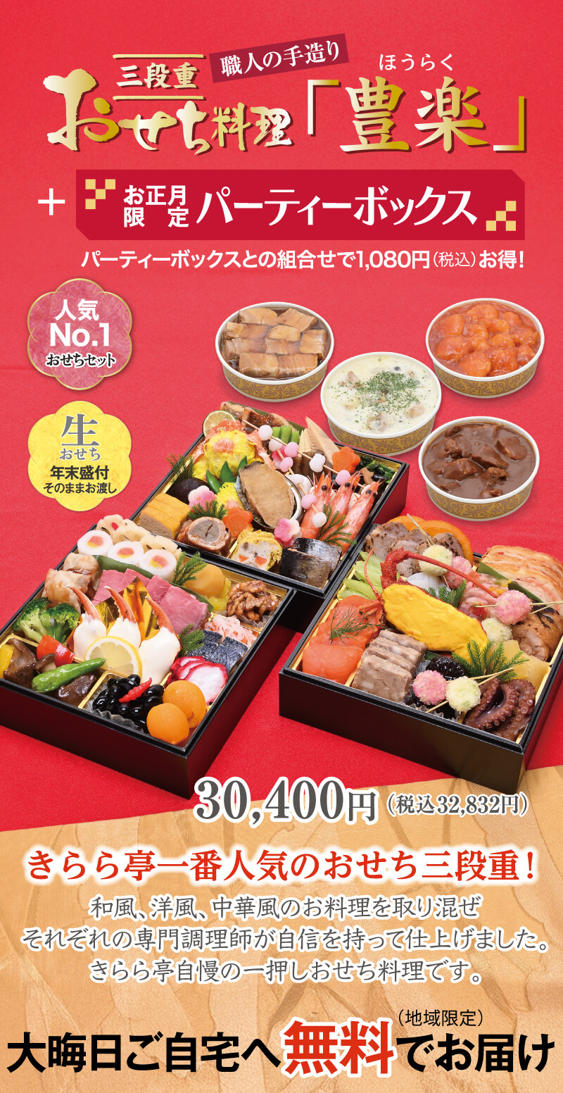 おせち料理三段重「豊楽」+お正月限定パーティーボックス