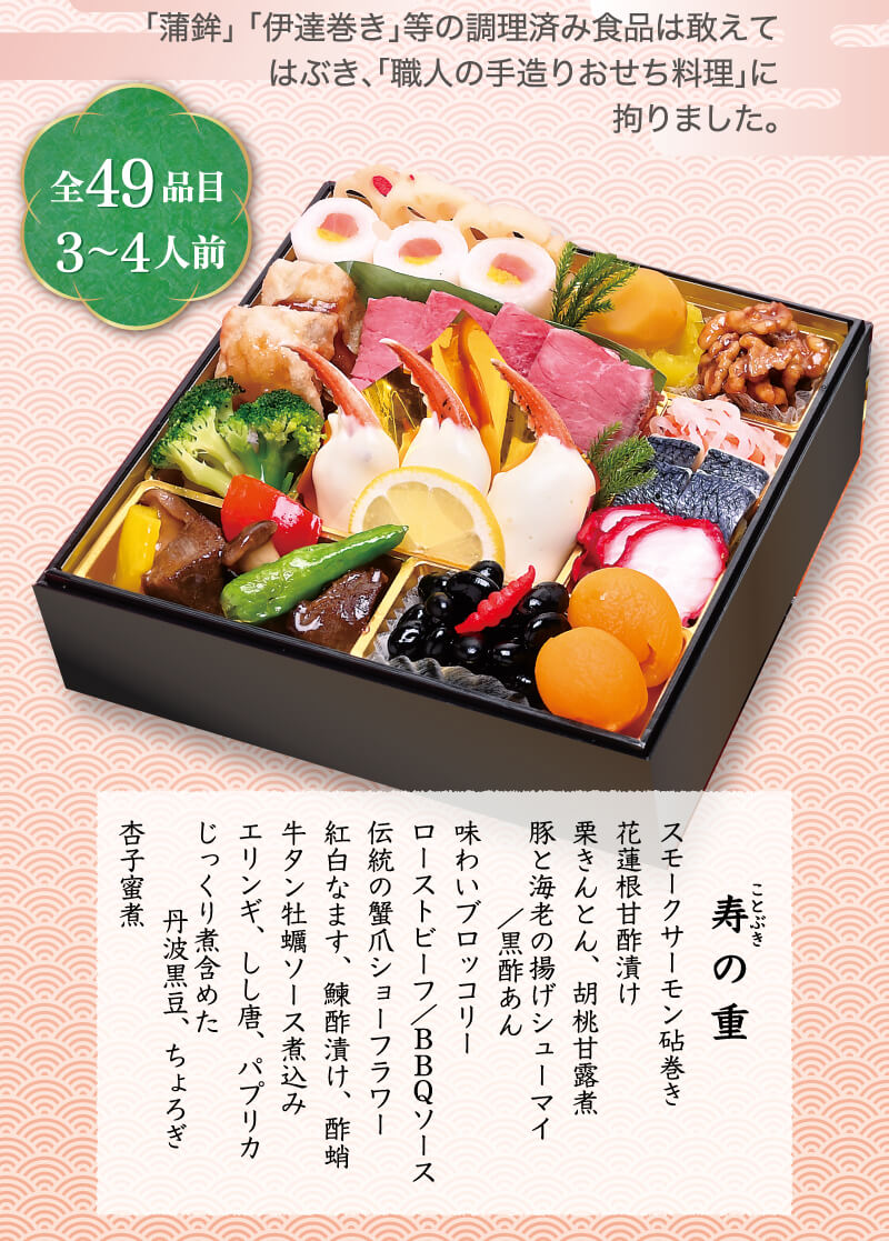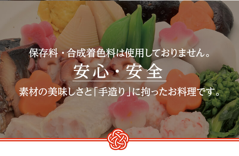 - 大晦日前日から大晦日に掛けて仕上げるおせち料理に付き、お届け時間のご指定はご容赦ください。