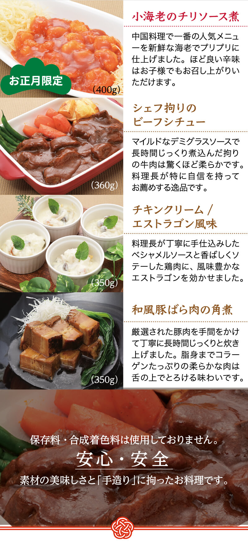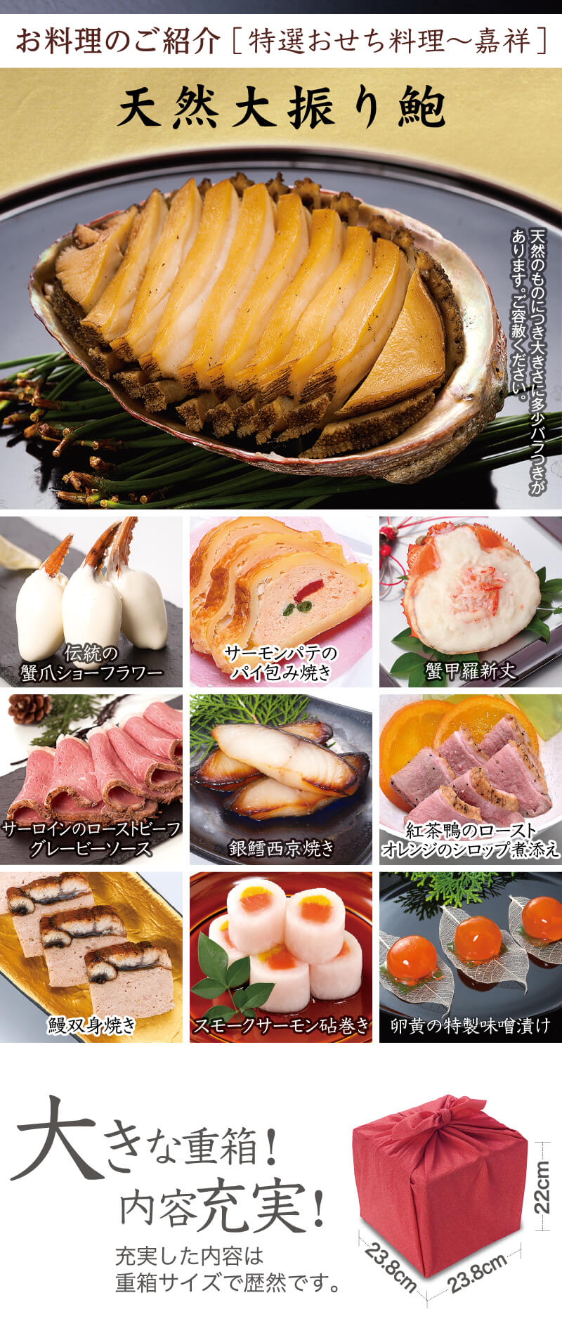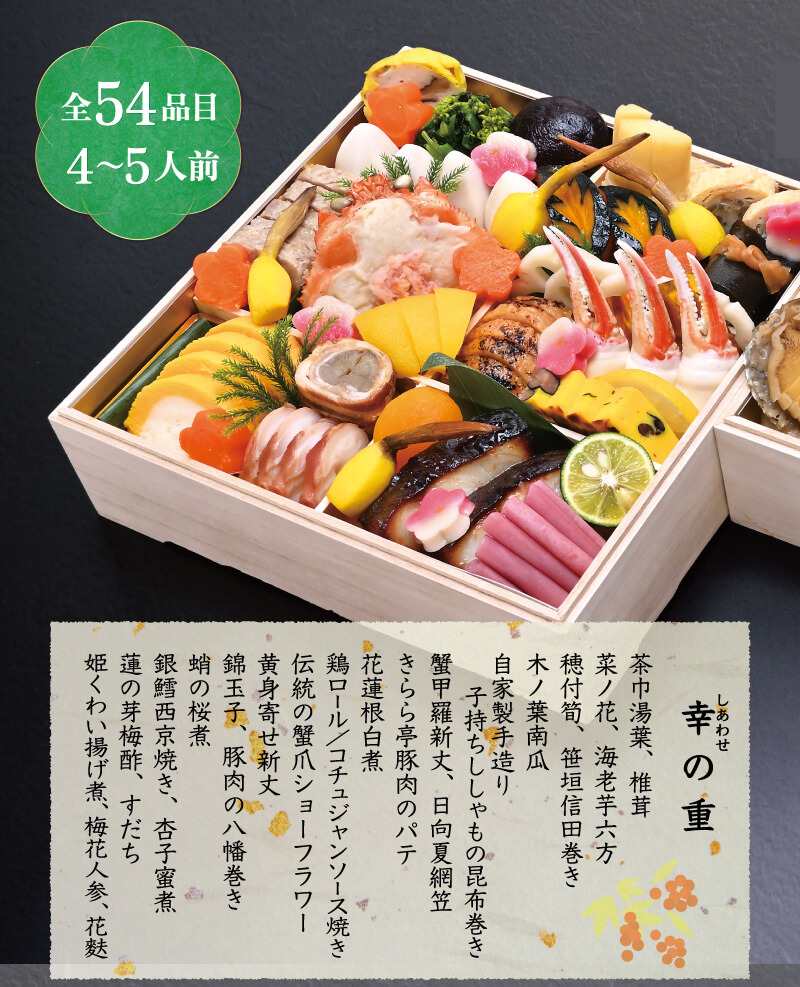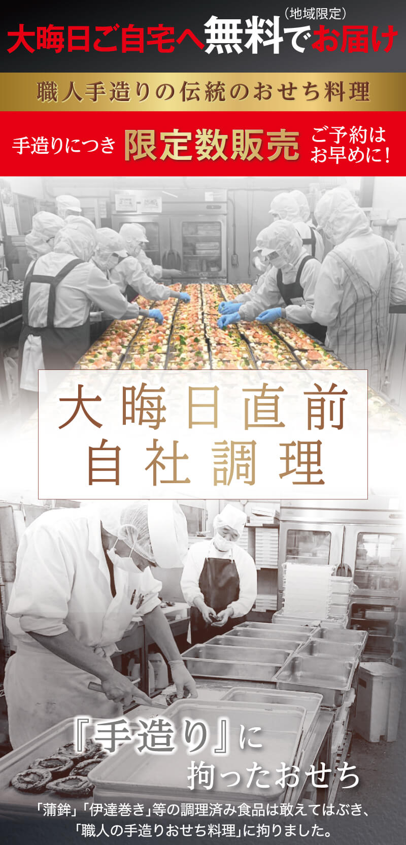 - 大晦日前日から大晦日に掛けて仕上げるおせち料理に付き、お届け時間のご指定はご容赦ください。