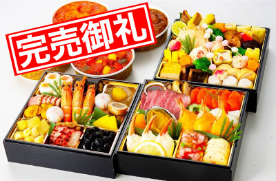 | 【お申込み方法】 お電話もしくは各ページ「WEBからのご注文はこちら」ボタンよりお申し込みください。 ●恐縮ですが生のおせちにつき地方発送はできません。 ◇保存料・合成着色料は使用しておりません。 ●新企画・新登場 ◆三段重「豊楽」の100セットのみ、八王子・日野市を除く、関東圏1都7県に冷蔵便でお届けします! 限定100セット(冷蔵便)三段重「豊楽」のご購入はこちら>> ※「豊楽」の限定100セットの地方発送分には、梱包・発送手数料 別途1,000円(税込)必要です。 ◆お一人様おせち「慶賀」・おせち料理 二段重「福寿」は冷凍便でお届けします! 冷凍で全国にお届け!「福寿」「慶賀」のご購入はこちら>> |